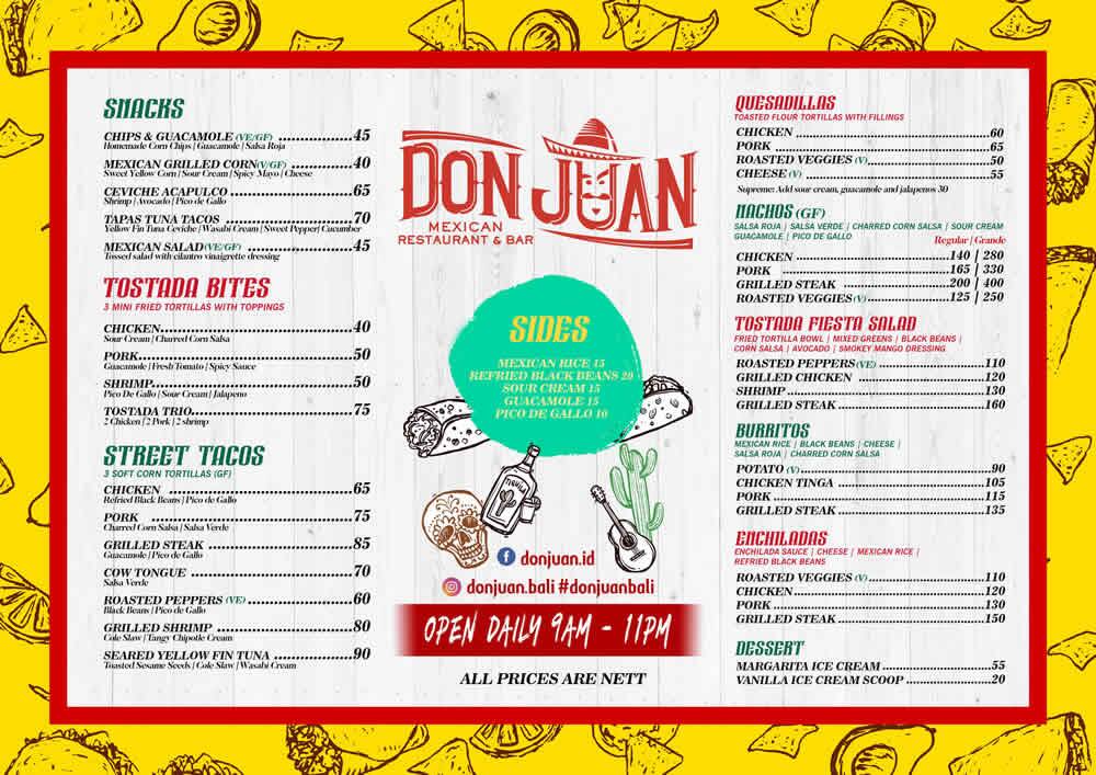 Menu Of Don Juan Mexican Restaurant And Bar Kuta Bali